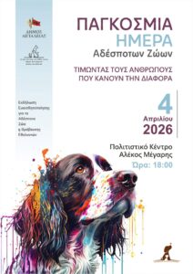 «Ο Δήμος Αιγιαλείας το Σάββατο 4/4 την Παγκόσμια Ημέρα Αδέσποτων τιμά τους αφανείς ήρωες που, με συνέπεια και αυταπάρνηση, βρίσκονται καθημερινά στην πρώτη γραμμή για την προστασία και την ευζωία των αδέσποτων ζώων.